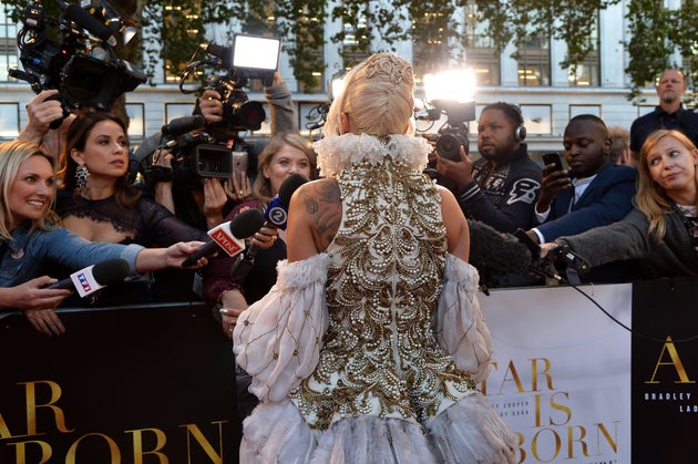 The “A Star Is Born” actress wowed in yet another stunning look at the London premiere of the film on Thursday, wearing a Sarah Burton-designed Alexander McQueen creation from the fashion house’s autumn/winter 2013 collection.